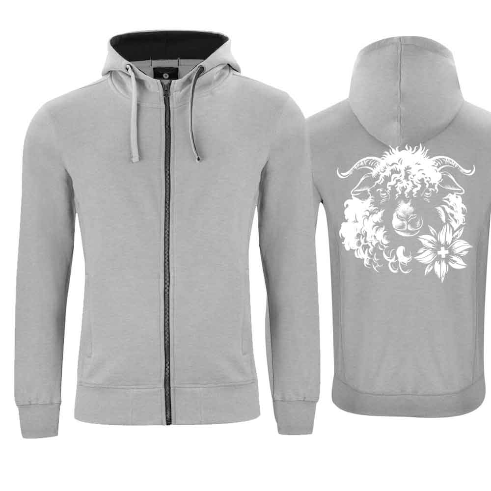 Kapuzenjacke mit Schwarznasenschaf, Hellgrau, Brust & Rücken