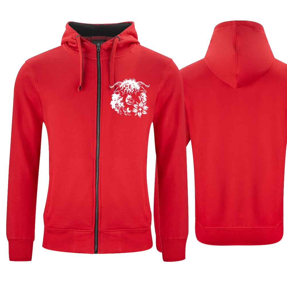Kapuzenjacke mit Schwarznasenschaf, Rot, Brust & Rücken