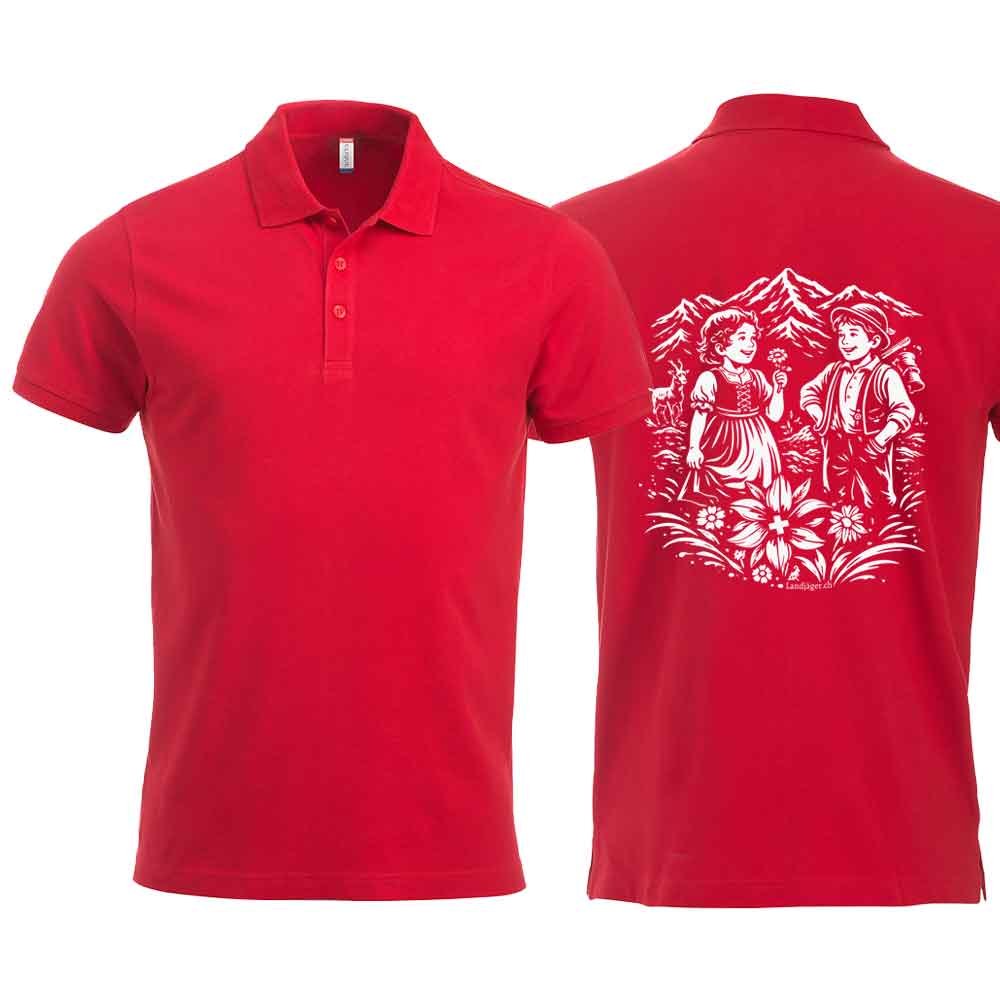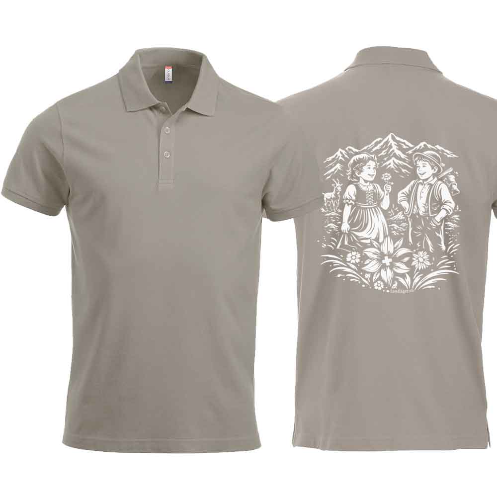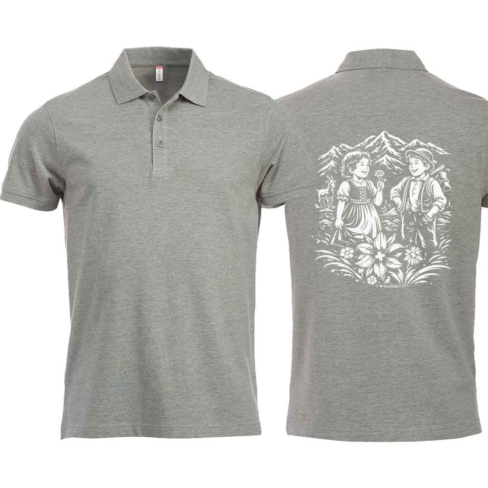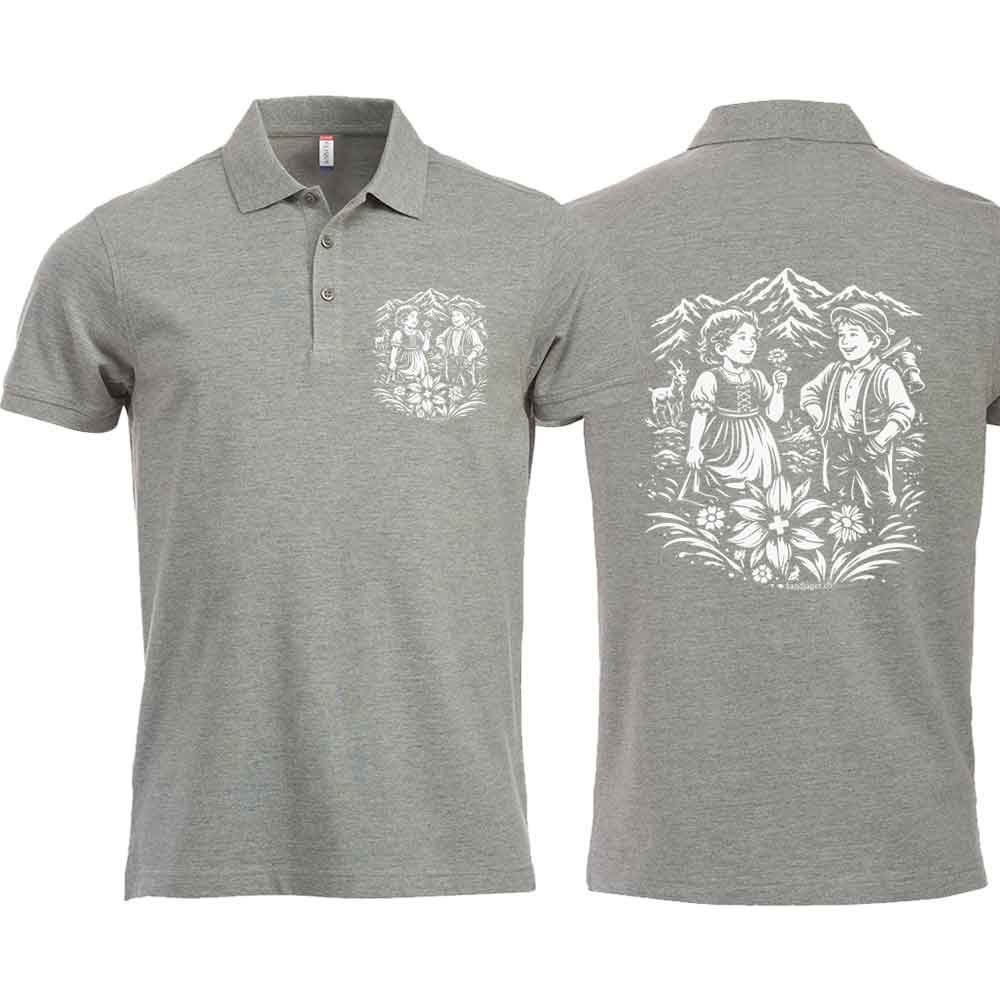 Polo femme greffé avec Heidi & Peter au look suisse, fier et magnifique. Disponible exclusivement ici.