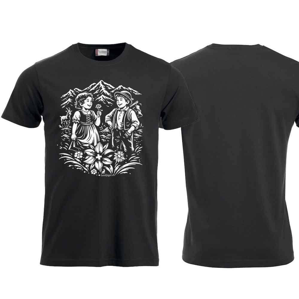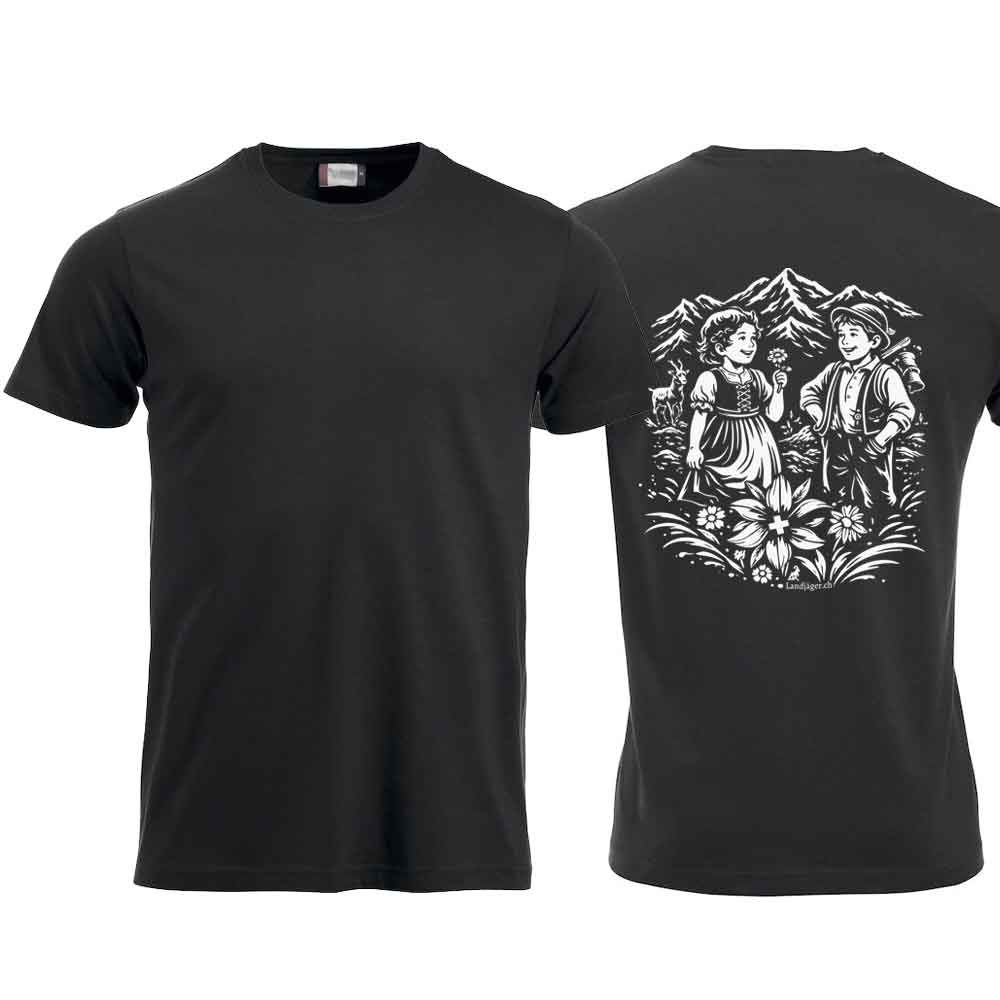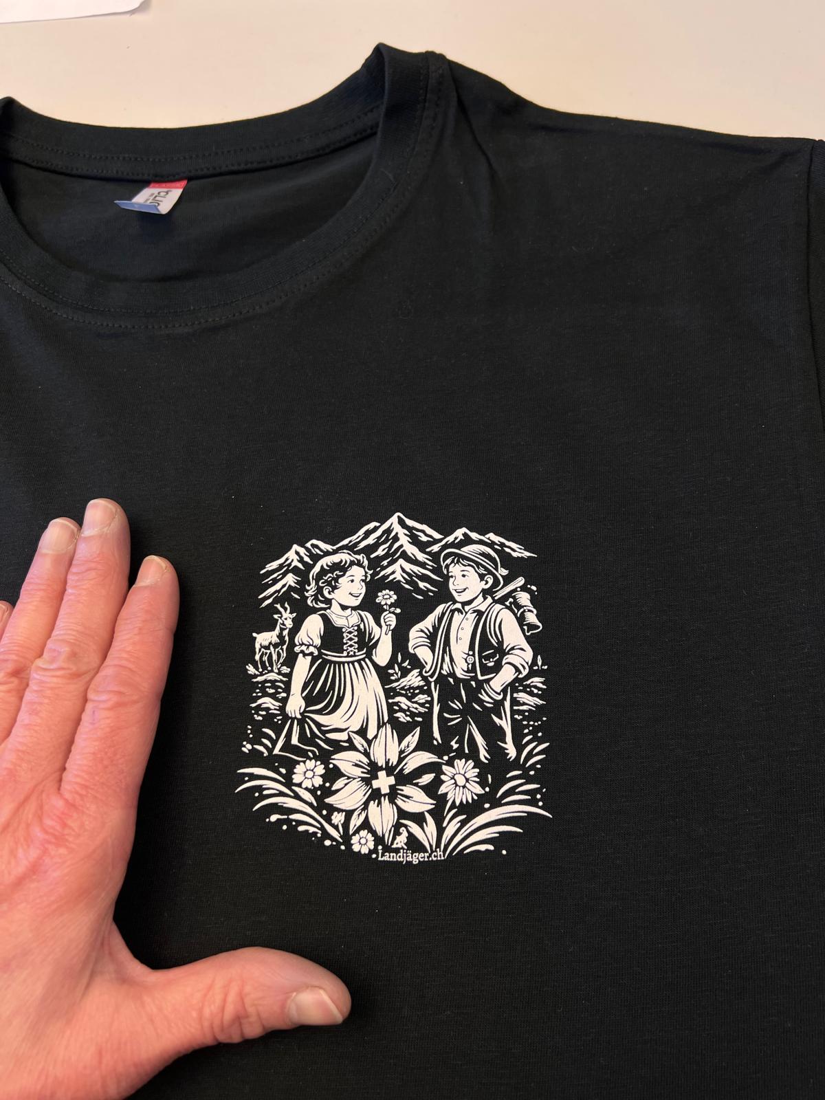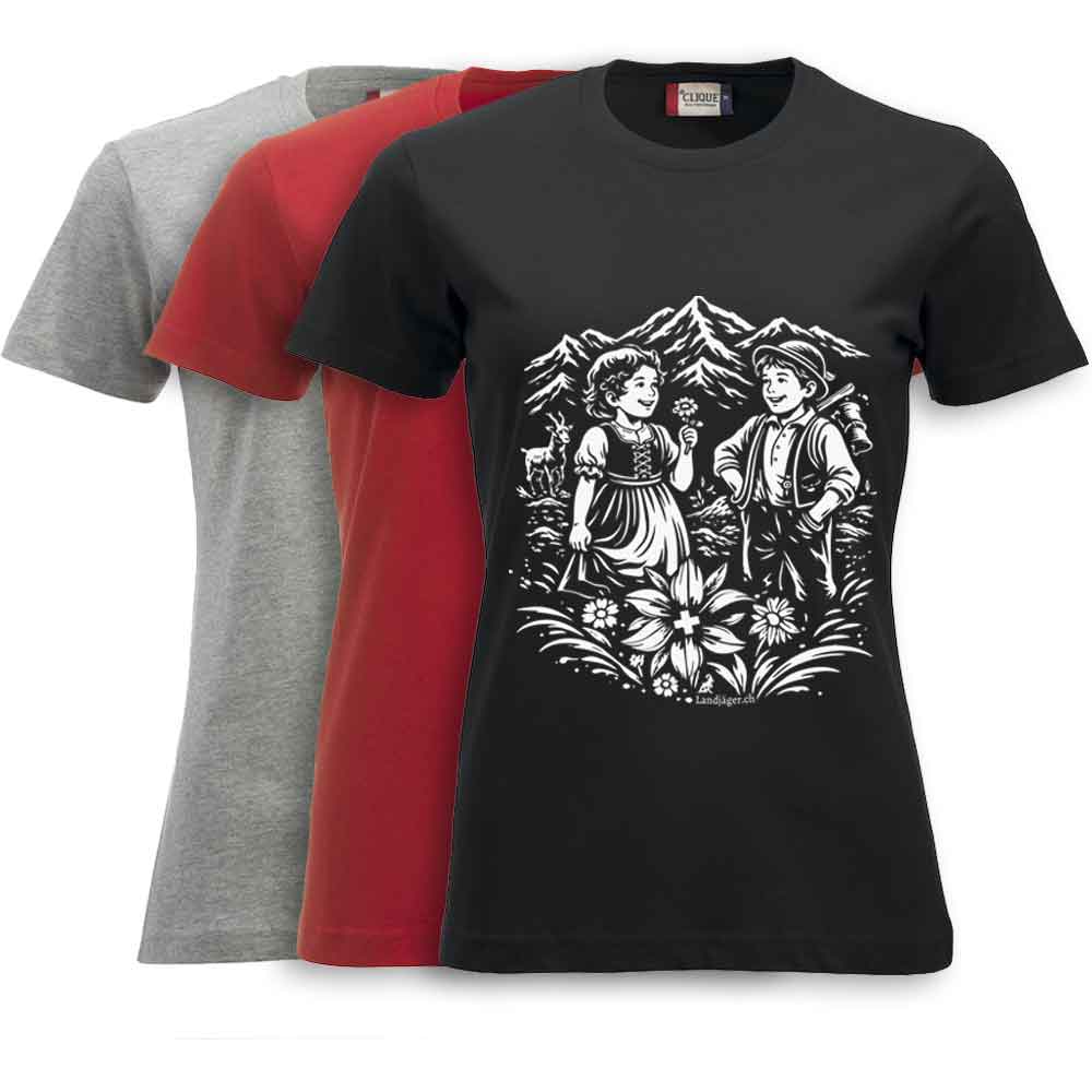 Damen T-Shirt veredelt mit Heidi & Peter im Swissnesslook, stolz und prächtig.